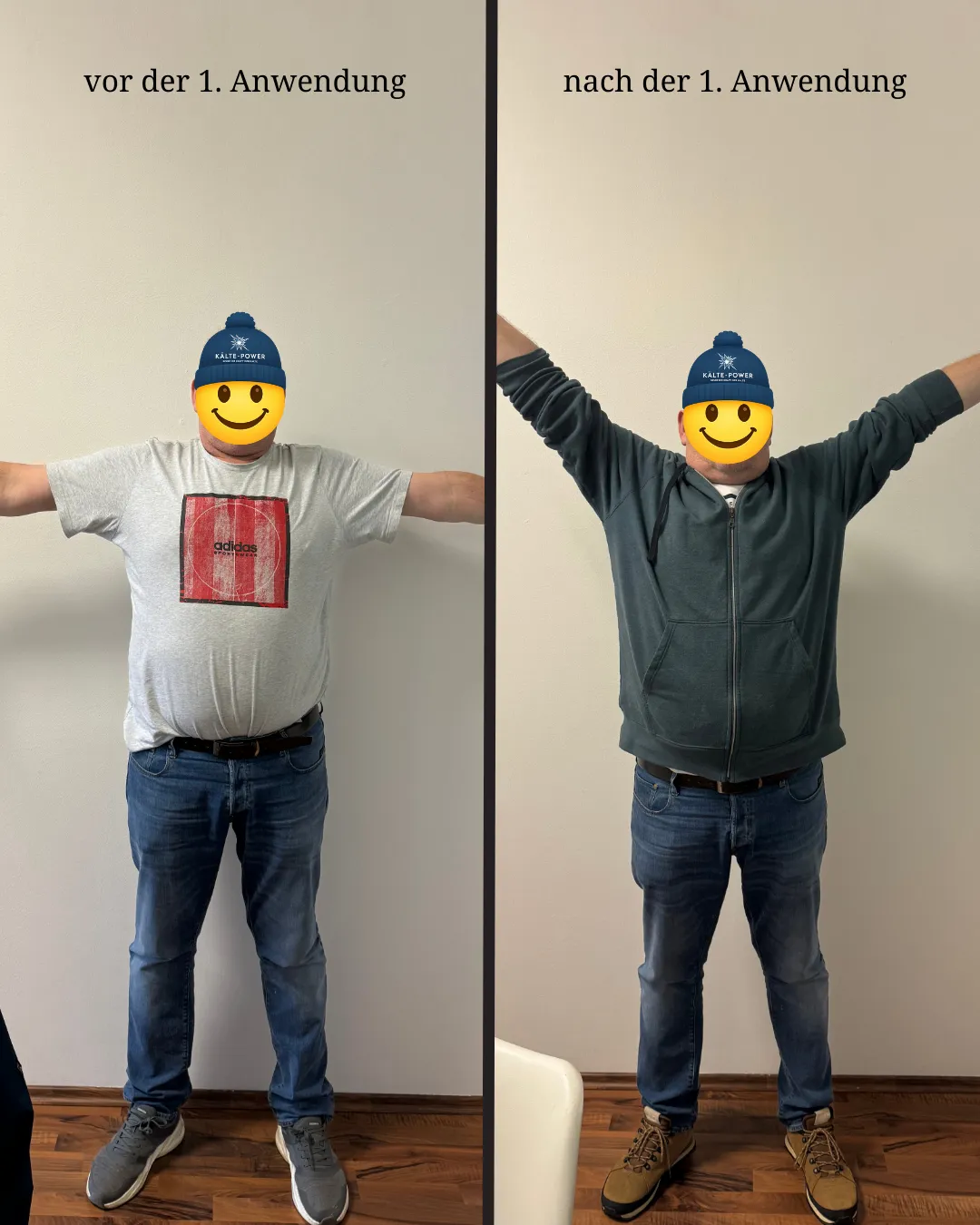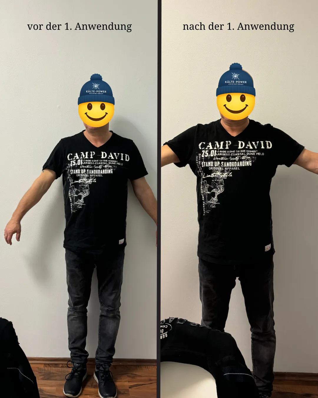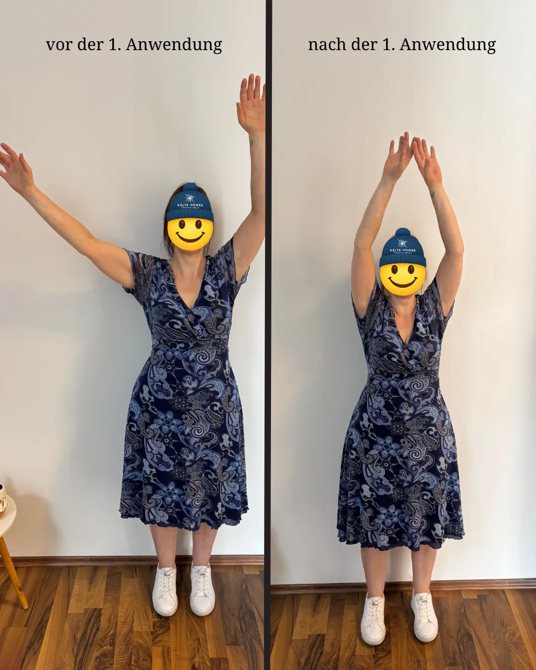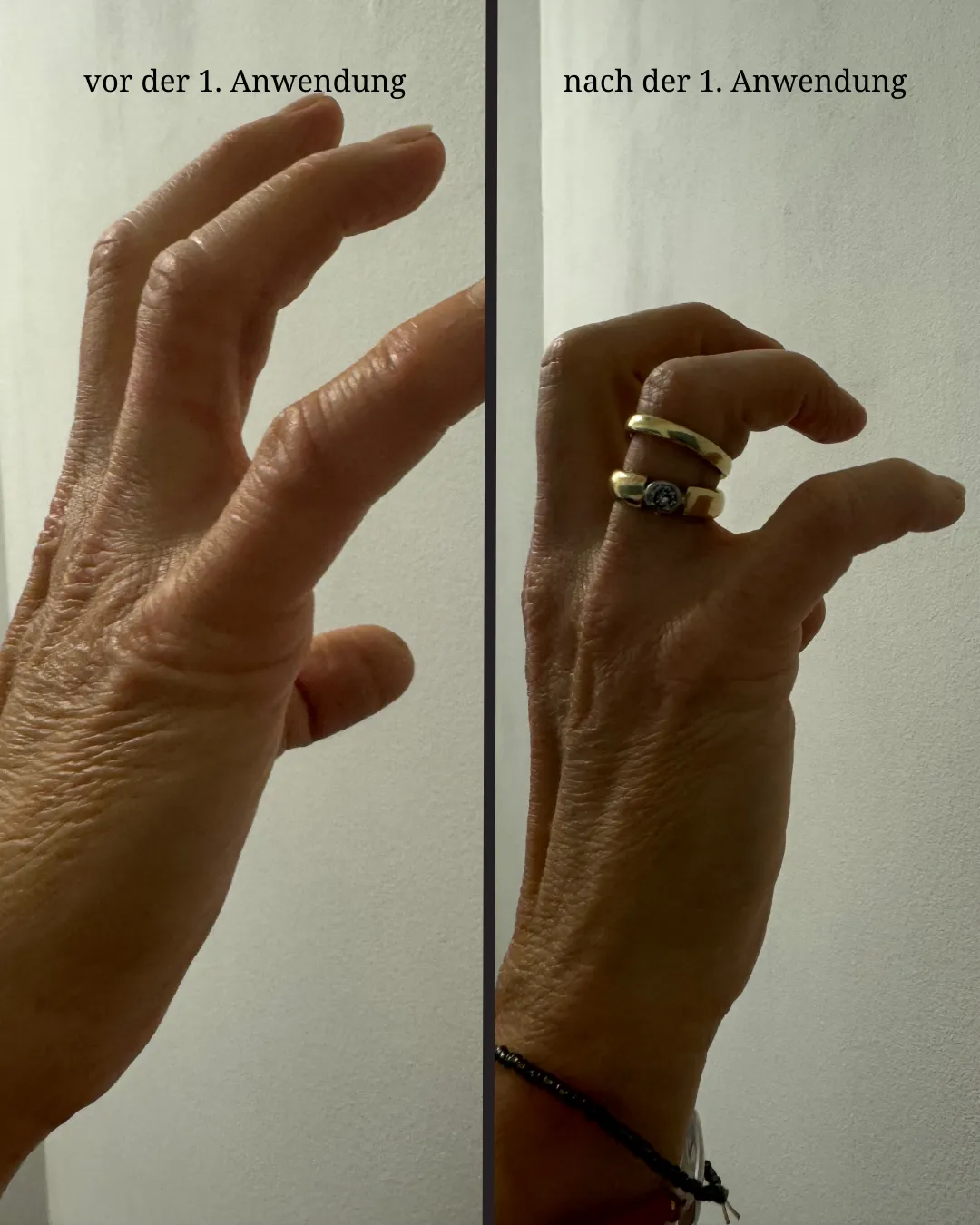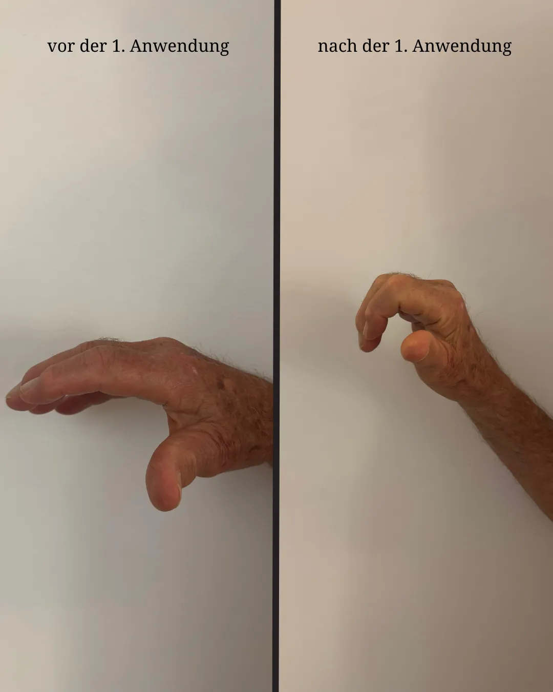 Manche Menschen nehmen bereits früh, vereinzelt auch nach der ersten Anwendung, subjektive Veränderungen wahr (siehe Beispielbilder)